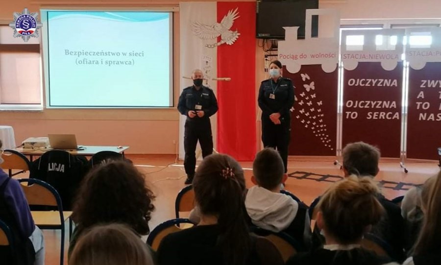 Funkcjonariusze wyjaśnili pojęcie cyberprzemocy oraz omówili formy tego typu przestępstw. Zapoznali również uczniów z prawnymi konsekwencjami, jakie grożą nieletnim za zachowania niezgodne z prawem i ogólnie przyjętymi normami społecznymi. Uświadomili uczniów, że szeroko rozumiana cyberprzemoc wśród rówieśników, m.in. publikowanie i rozsyłanie ośmieszających zdjęć czy filmów, a także podszywanie się pod inną osobę, czy też obraźliwe komentowanie wpisów niesie za sobą poważne konsekwencje.