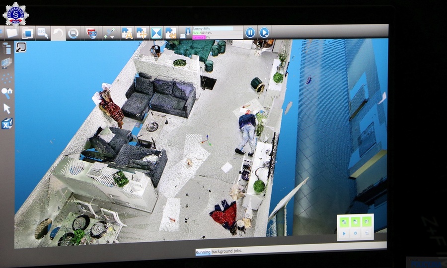 W ramach doskonalenia zawodowego uczestnicy szkolenia ćwiczyli umiejętności obrazowania na zasymulowanych miejscach zdarzeń z różnymi rodzajami śladów kryminalistycznych i w różnych warunkach oświetleniowych. Po wykonaniu skanów zadaniem funkcjonariuszy było złożenie poszczególnych obrazów i prezentacja efektów pracy w postaci gotowej wizualizacji miejsca zdarzenia.