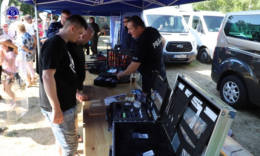 Na przygotowanym stoisku promocyjnym czekali funkcjonariusze Zakładu Prawa i Kryminalistyki oraz Zakładu Prewencji i Technik Interwencyjnych. Policyjni nauczyciele przedstawili 3 rodzaje walizek kryminalistycznych: do oględzin, do oględzin zwłok oraz do tworzenia tzw. „pułapek kryminalistycznych”, a także zapoznali uczestników z uzbrojeniem stanowiącym wyposażenie Policji – broń palna oraz środki przymusu bezpośredniego.