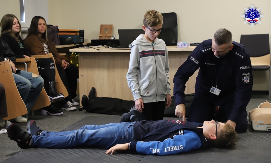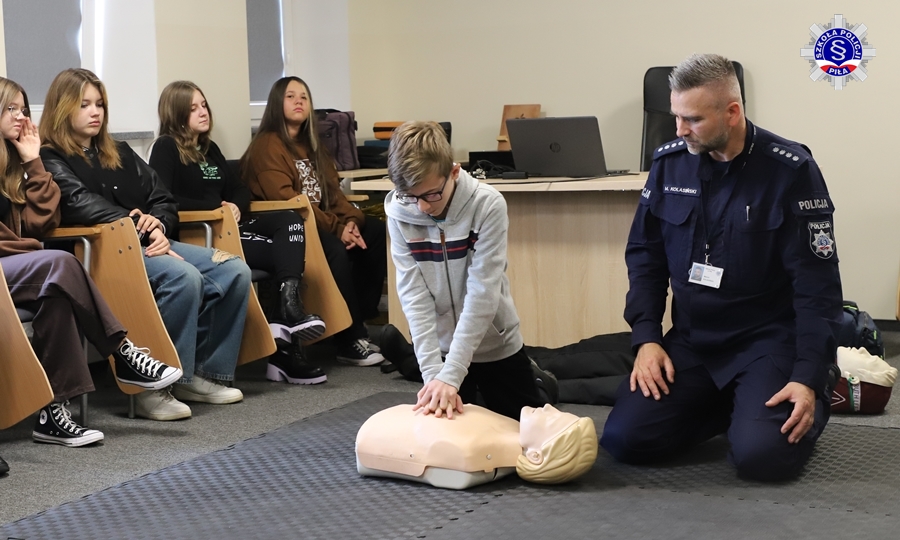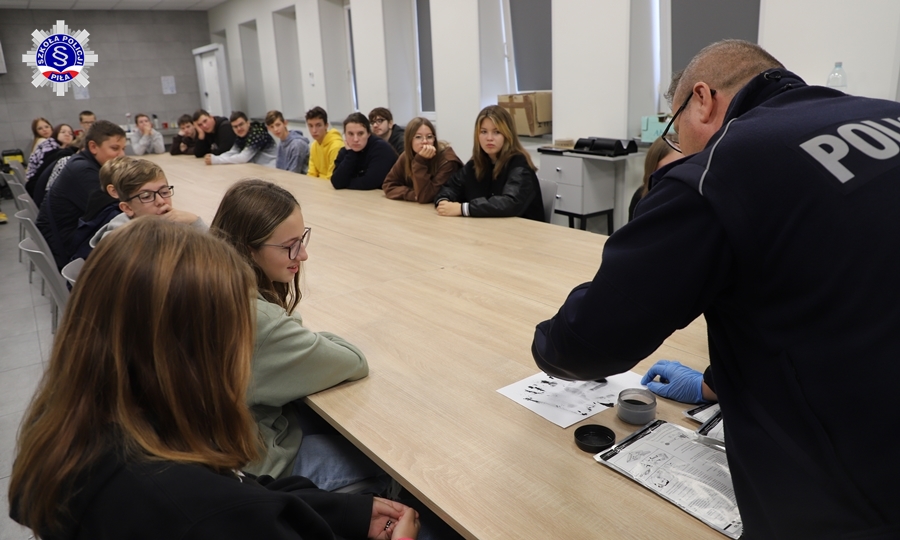 Wizyta rozpoczęła się od spotkania z nadkom. Marcinem Kolasińskim, pod którego okiem uczniowie ćwiczyli udzielanie pierwszej pomocy. O tajnikach pracy techników kryminalistyki opowiedział podkom. Marcin Mańczak. Ponadto młodzież zwiedziła szereg innych miejsc, które skrywa blisko stuletni budynek Szkoły Policji w Pile oraz wysłuchała historii z nim związanych.
