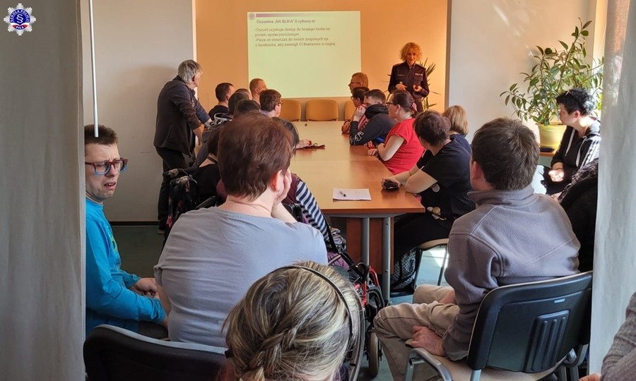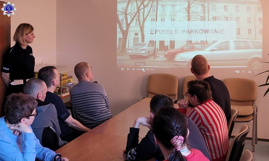 Podopieczni z Zakładu Aktywności Zawodowej dowiedzieli się również co robić, aby uchronić się przed tego rodzaju przestępstwami, a w sytuacji kiedy staną się już ofiarą przestępstwa jak właściwie reagować i jakie czynności związane z zawiadomieniem organów ścigania należy podjąć. Podopieczni z Zakładu Aktywności Zawodowej wysłuchali również jak bezpiecznie poruszać się po drodze zgodnie z przepisami Ustawy Prawo o ruchu drogowym, jakie elementy wyposażenia są niezbędne do tego, aby być bardziej widocznym, a także jak właściwie poruszać się po drodze publicznej w obszarze zabudowanym i poza nim na wózkach inwalidzkich oraz innych pojazdach mechanicznych przystosowanych do osób niepełnosprawnych w tym motorowerów.