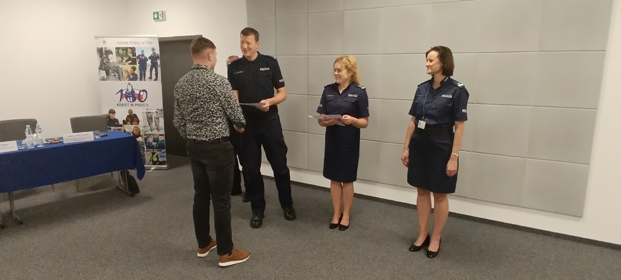 Wszyscy uczestnicy warsztatów otrzymali z rąk Zastępcy Komendanta Szkoły Policji w Pile insp. Marcina Sapuna świadectwa ukończenia szkolenia.
