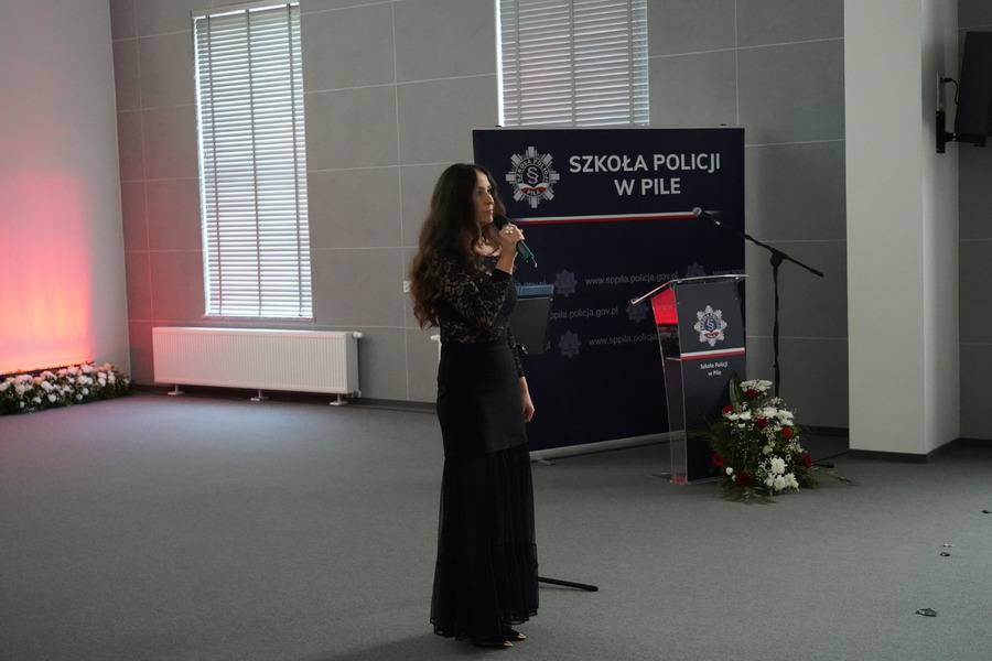Uroczystość rozpoczęła się od złożenia meldunku Komendantowi Szkoły Policji w Pile, po czym wprowadzono sztandar naszej jednostki. Wszyscy zgromadzeni, w tym kadra i pracownicy, z pełnym szacunkiem oddali hołd symbolom narodowym oraz odśpiewali hymn narodowy.